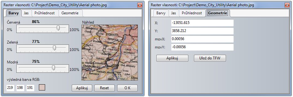 - setting of colors and brightness of displayed layers,